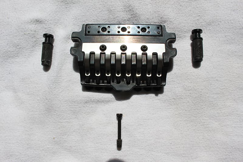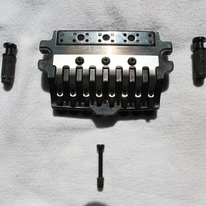 • Snap-in / snap-out tremolo arm (in tremolo version) and torque adjustment screw (for tremolo arm tightness) in Edge III versions - Construction parts: Knife edges, string holder block, string stopper bolts, fine tuning bolts (in tremolo version)