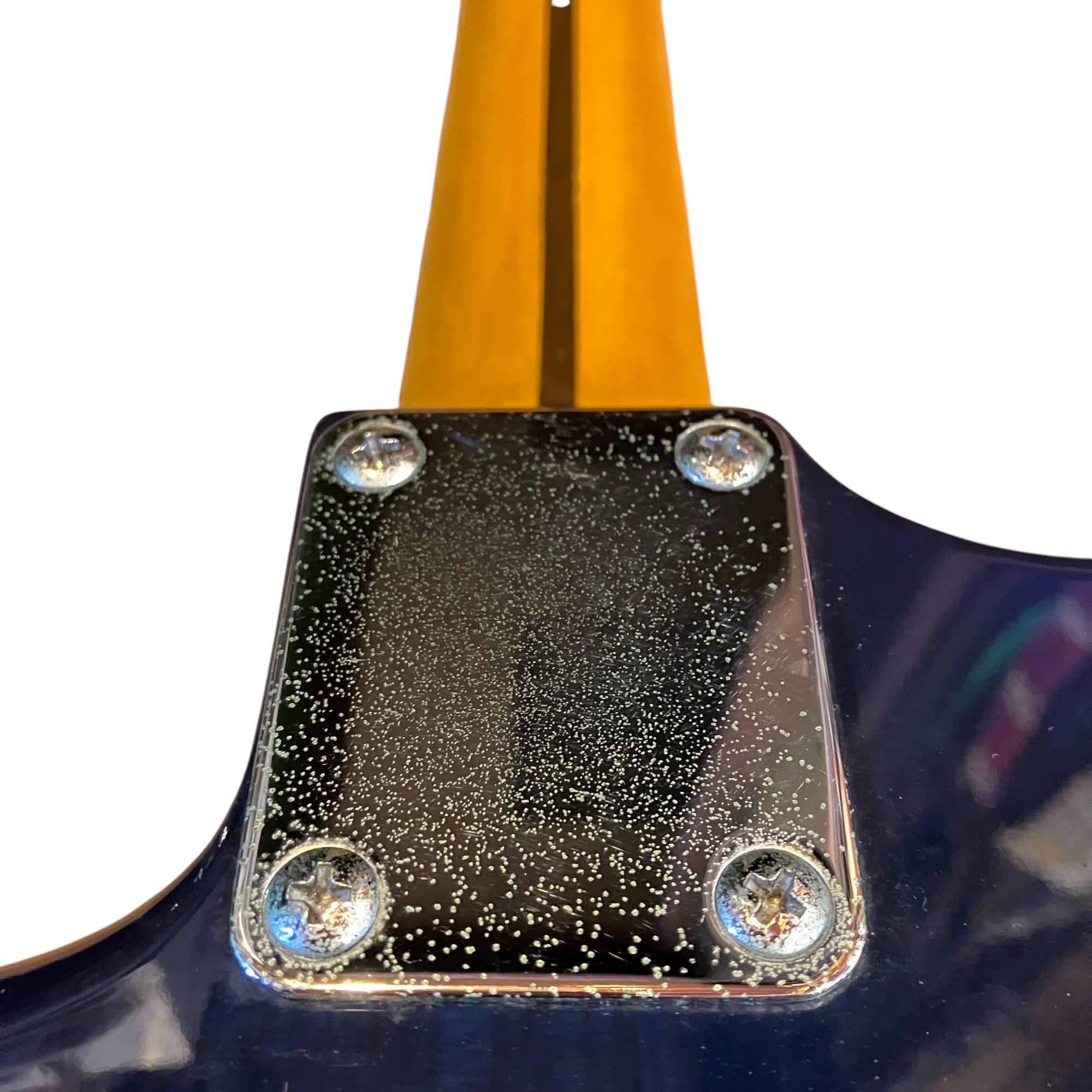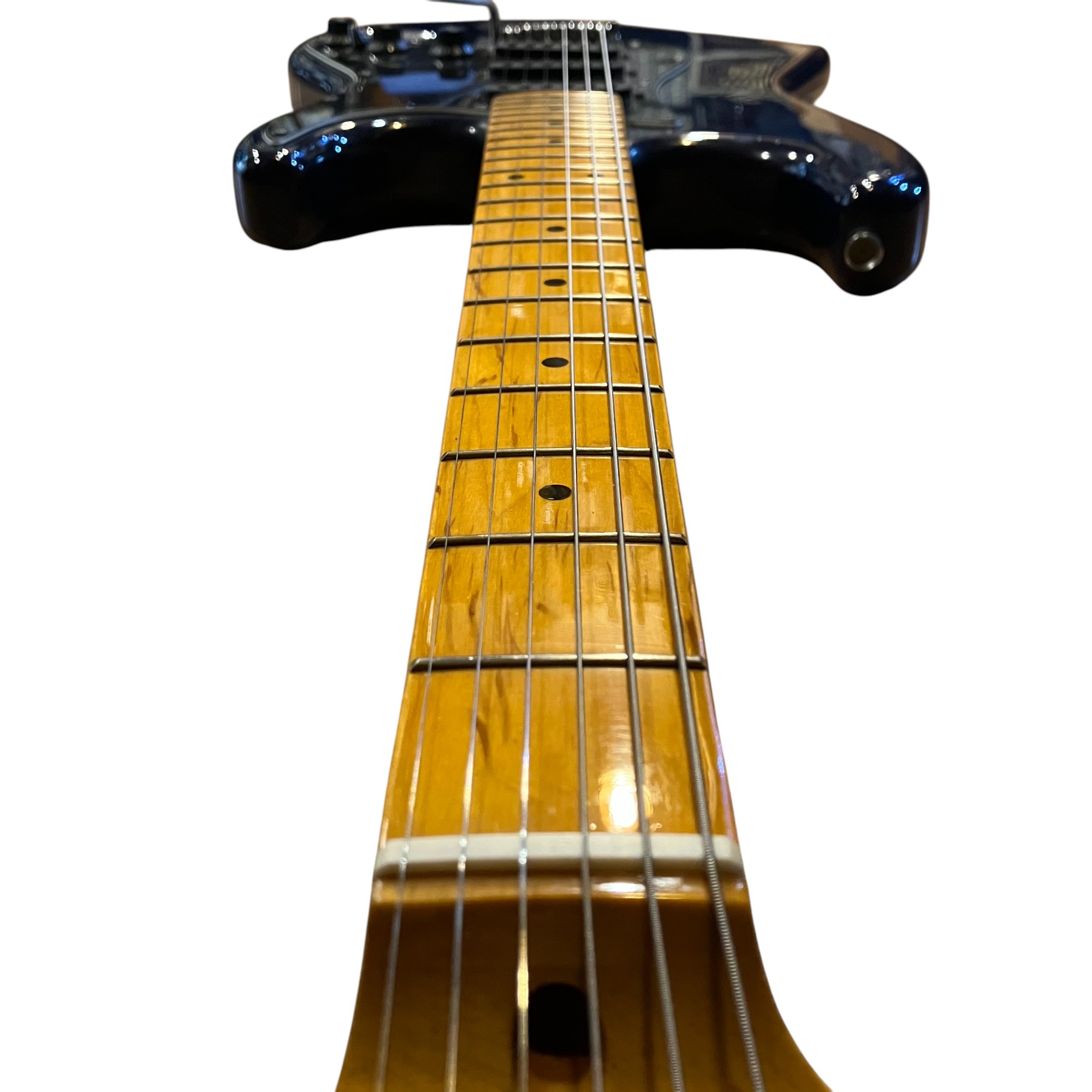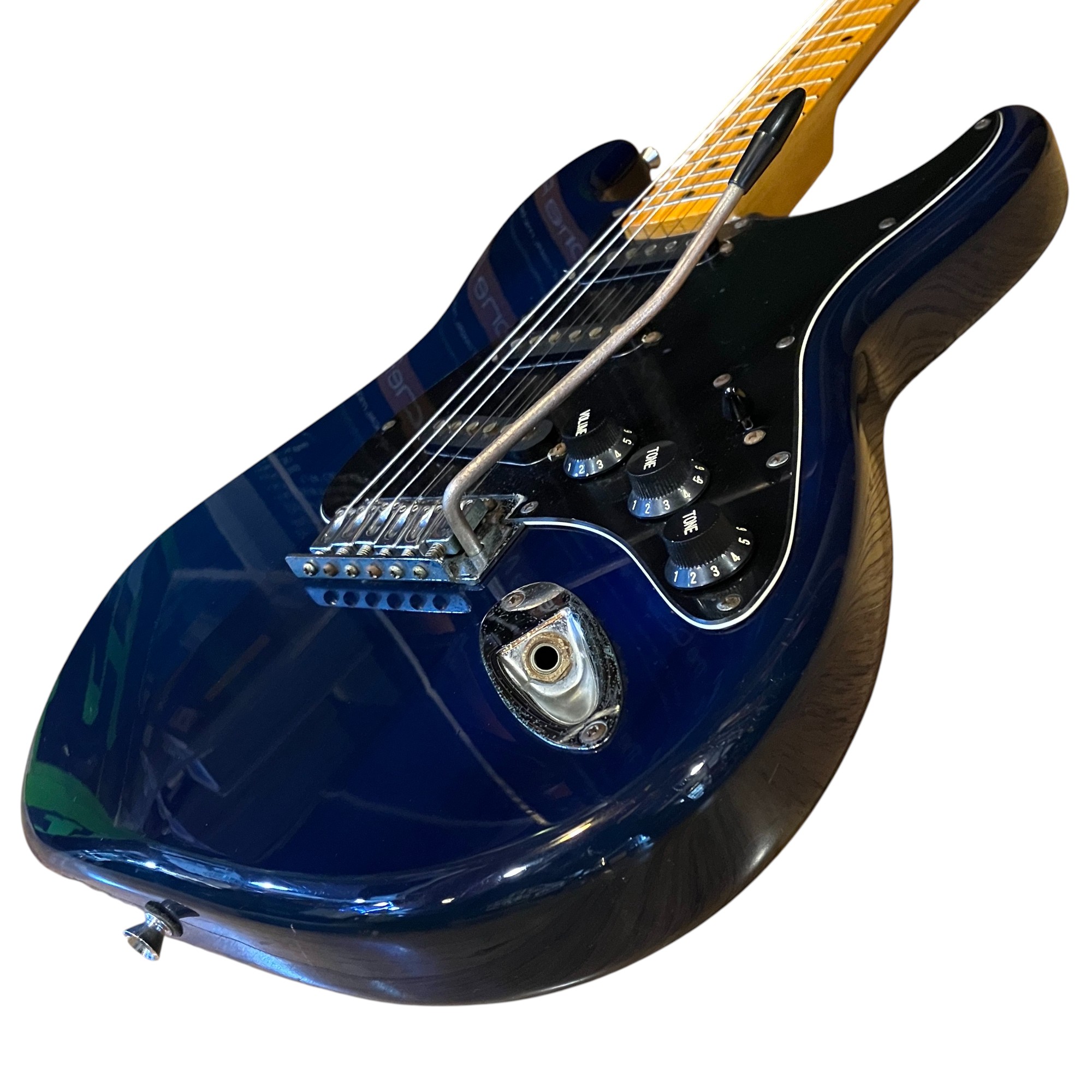 Body: Stratocaster-style, dark blue finish, black pickguard