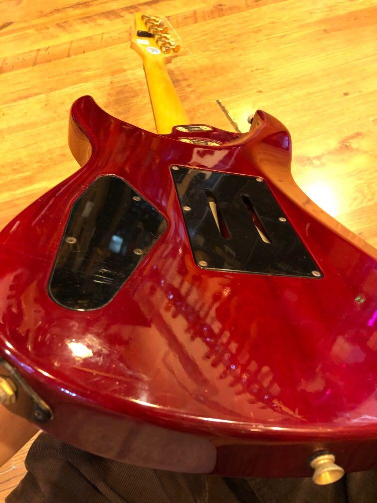 - Hardware / Bridge: Rockin’ Magic Pro II tremolo system in many examples